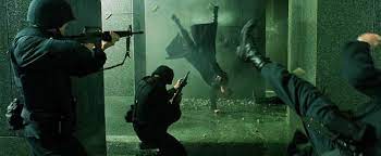 C’est ça la jouissance de Matrix : la réalisation (aussi bien au sens d’actualisation que de mise en scène) de la dépense physique de ses héros et son impact sur le décor.