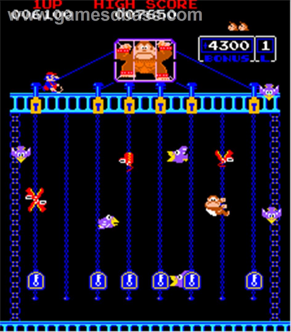 Là où Donkey Kong se jouait surtout sur les réflexes, Donkey Kong Jr. demande de réfléchir un minimum sur la manière de procéder, les obstacles n'étant plus de "simples tonneaux" à esquiver, mais tout un bestiaire au comportement propre et patterns à assimiler, et quelques embûches un minimum élaborées (comme les plateformes mouvantes par exemple). On a aussi une très bonne idée de gameplay avec le principe des serrures à ouvrir, qui sera largement repris dans les jeux d'aventure futurs tels que les Zelda…