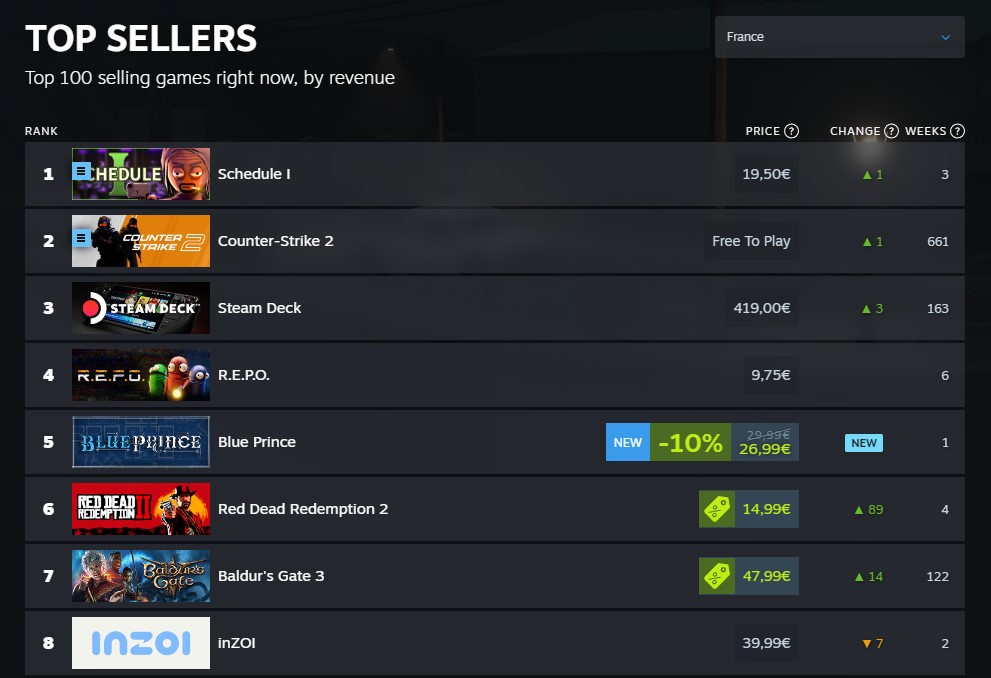 Une excellente surprise, le jeu a un potentiel phénoménal. C'est bien simple, le jeu est n°1 des ventes sur Steam ce 14 avril 2025 partout en Europe et n°2 aux US et Canada. Certes, ça ne fait que 3 semaines, mais pour un petit jeu en early-access à 20€, c'est un tour de force. Déjà 100k+ reviews et noté "overwhelmingly positive", je crois que le cadre est posé.