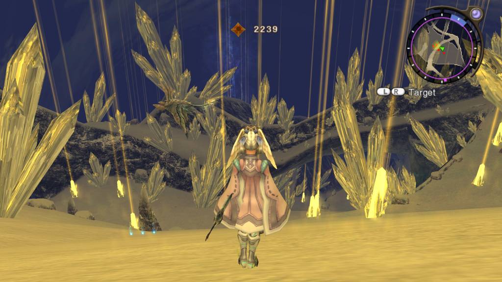 Concernant le gameplay, il s'agit en fait du premier J-RPG auquel j'ai joué, et j'ai vraiment aimé le principe. Xenoblade n'est pas un jeu au tour par tour : on se bat avec des auto-attaques, qui se déclenchent selon une certaine fréquence, et en utilisant des techniques qu'on active en pressant l'icône correspondante. Mais le plus jouissif est l'utilisation de la Monado. En effet,