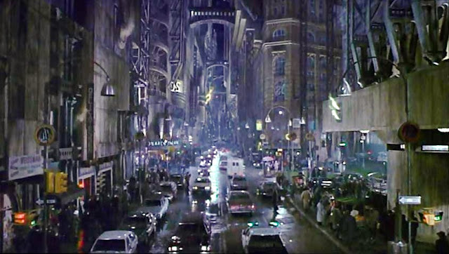 les décors urbains rétrofuturistes sont inspirés de Metropolis et mélangent des décors de néons à des miniatures d'immeubles, les rues du L.A. futuriste ont été recréées aux studios de Burbank, tandis que le concepteur Syd Mead se charge de la technologie futuriste, comme les engins...
