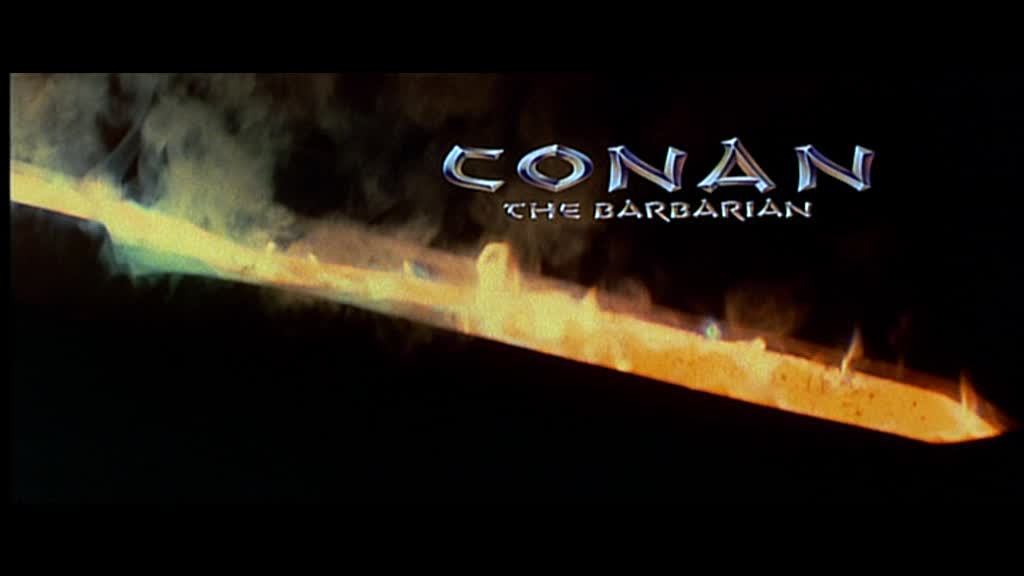 le générique se déroule tandis qu'est forgée une épée, sur la musique virile de Basil Poledouris