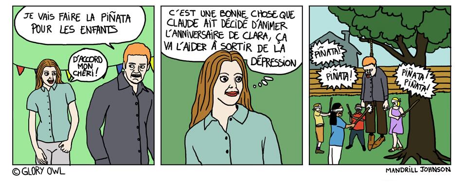 Bel objet que cette bande dessinée à huis clos. Chaque double page représente le même endroit à un moment différent, voire à plusieurs moments en même temps. Exercice de style réussi.